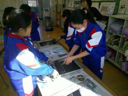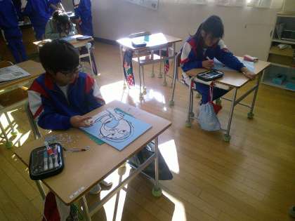校内図工展の作品づくりに向け、4年生が頑張っています。丁寧な作業が重要な版画ですが、顔の細かい部分の彫り方を各自が工夫し、一人一人違った表現をしてくれています。
