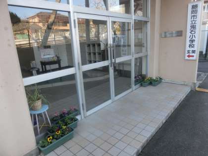 地域住民の方にパンジーの苗をいただき、美化・園芸委員会の児童がプランターに移植しました。パンジーを植えたプランターを玄関に置き、水やりなどの世話をして育てています。今日もきれいに咲いたパンジーが登校してくる児童を玄関で待っています。
