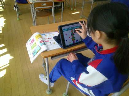 12月11日(水) 3年外国語「クリスマス」【進んで学ぶ子】 公開日 2024/12/11 更新日 2024/12/11 できごと 今日のめあては「ほしい材料をあつめて、クリスマスカードを作ろう」でした。子どもたちはタブレットで好きなクリスマスカードのイラストを作成。楽しい課題に時間を忘れて取り組んでいました。