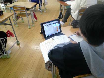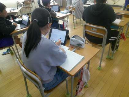 今日のめあては「割合を計算し、100%にしよう」でした。表をつくって、割合を計算しましたが、合計が101%になってしまいました。先生から「さぁ、どうしよう」と投げかけられた5年生。5年生のすばらしさは、この後みんなで議論していくところです。100%にする方法を導き出そうと必死に考えていました。