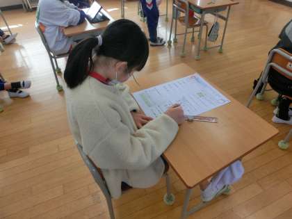 2学期に学んだことの定着度を確認するために2学期のまとめテストを行いました。どの子供も真剣に問題に取り組んでいました。自分が満足する点数になるといいですね。