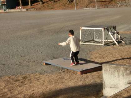 朝、子供たちは登校すると、宿題や提出物を出したり、授業の準備を終えたりすると、校庭へ出て思い思いに遊びます。友達と鬼ごっこをする子、ジャンピングボードを使って縄跳びの練習をする子、バスケットゴールめがけてシュートを決める子など様々です。校庭へ出ると「寒い」と感じますが、子供たちは寒さに負けずに元気に楽しく遊んでいます。