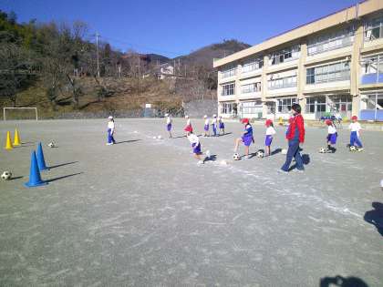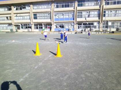 1月14日(火) 1・2年体育「ボール蹴りゲーム」【進んで学ぶ子】 公開日 2025/01/14 更新日 2025/01/14 できごと 今日からボール蹴りゲームのスタートです。1年生は初めて取り組む児童が多かったので難しそうにボールを蹴っていましたが、2年生は上手に蹴っている児童がほとんどでした。2年生が良い見本になってくれています。