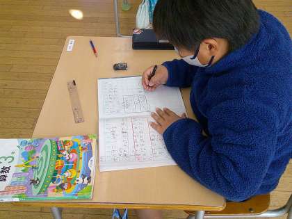 1月16日(木) 3年算数「重さのたんい」【進んで学ぶ子】 公開日 2025/01/16 更新日 2025/01/16 できごと 今日のめあては「重さを知るためにはどんな方法が必要か考えよう」でした。全体の重さが1450g、つみきだけの重さを計算でできるのかなど、必死に自分の考えを出そうとしていました。先生から「2年生のときに学んでいるよ」とヒントを出され、「あっ、分かった」と気が付ける児童もいました。