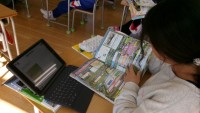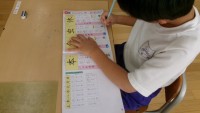 今日は時計をよむ学習をしました。既に生活の中の経験から、時刻を読むことのできる児童がほとんどでした。先生が「○時□分を時計で表してみよう」と指示を出して、一番に先にできた児童が先生役として、正しい答えを教えていました。
