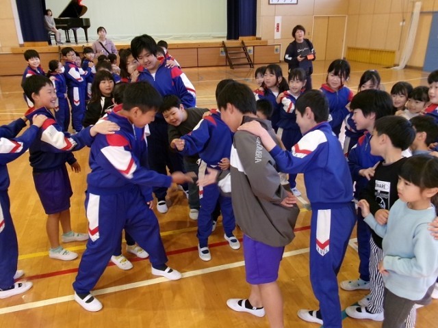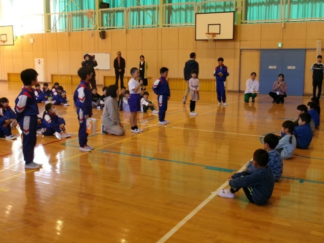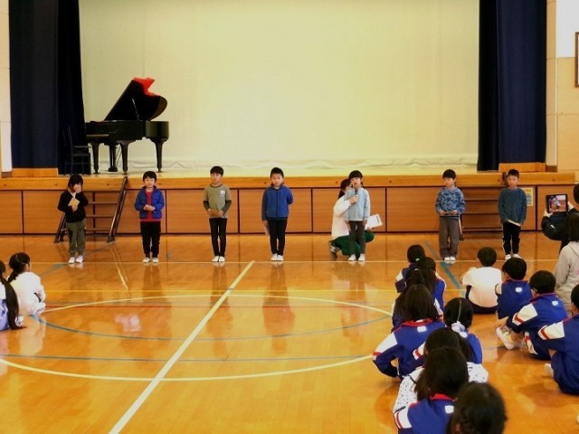 業前の時間を使って、1年生の「おむかえ集会」を行いました。児童会の役員が進行役を務め、上級生から1年生をむかえる言葉、2年生からアサガオの種のプレゼント、児童代表の言葉、1年生のインタビューと盛りだくさんの内容でした。最後に全校で「ジャンケン列車」を行い、楽しく集会を終えることができました。1年生の皆さん、ようこそ、鬼石小学校へ。これからみんなで楽しく学校生活を送りましょう。