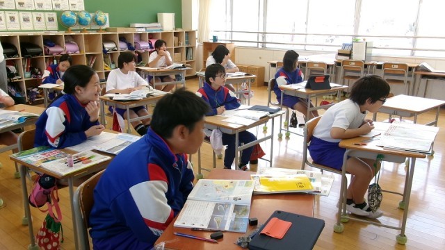 今日のめあては「日本の国土はどのような特徴があるのだろう」でした。児童は、教科書の地図や資料集を見ながら考え、「本州が一番大きい」「日本の一番南は沖の鳥島」など答えていました。徐々に知識量も増えてきました。