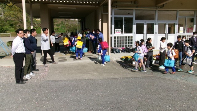 今日は小学校の児童会、鬼石中学校の生徒会、PTA本部役員、民生委員児童委員の皆様にお集まりいただき、今年度初めてのあいさつ運動を行いました。子どもたちもたくさんの人に出迎えられ、うれしそうでした。今年度もあいさつすることを通して、自己表現できる子に育てていきたい思います。