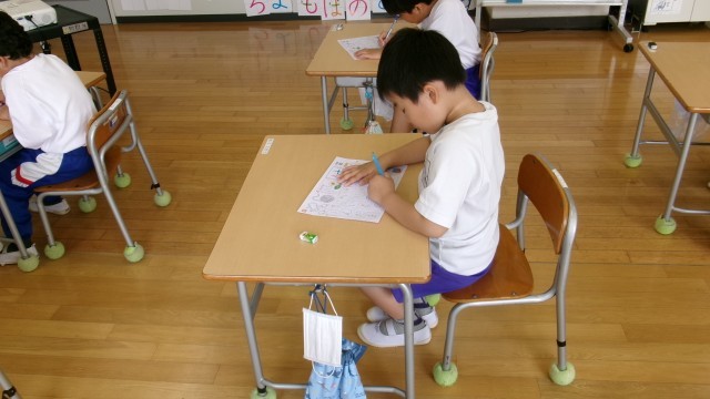 今日はひらがな「け」の学習です。学習課題にじっくり、落ち着いて取り組むことができています。どんどん成長しています。