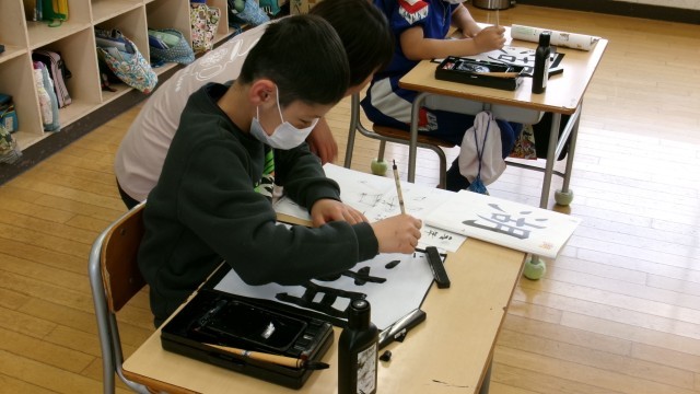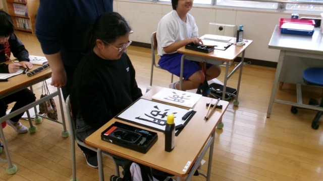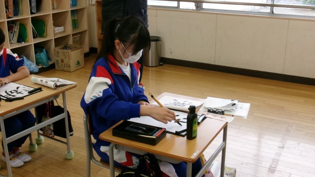 今日は毛筆にチャレンジしました。「湖」を練習しましたが、さすが6年生と思える筆遣いをしている児童が多く、字も整った字になりました。