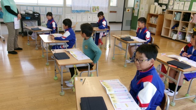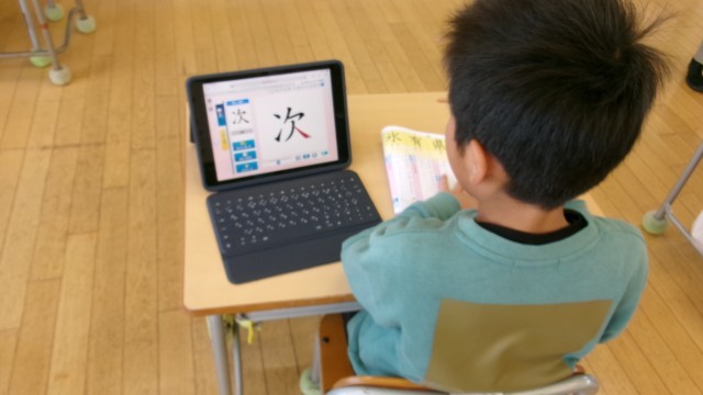 タブレットを使って新出漢字の学習をしました。学習方法が定着していて、児童はどんどん学習を進めることができます。