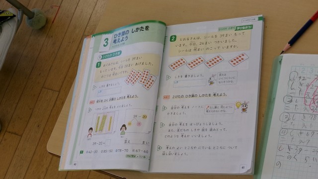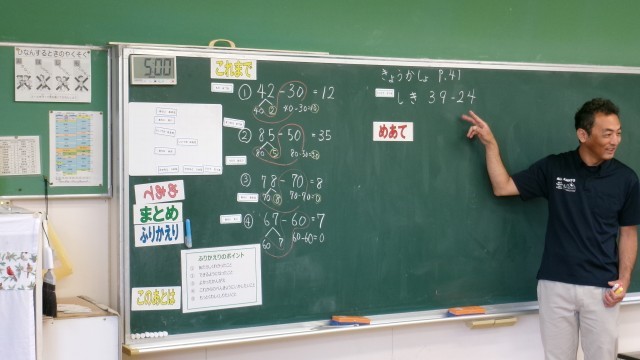 5月7日(水) 2年算数「2けたのひき算」【進んで学ぶ子】 公開日 2025/05/07 更新日 2025/05/07 できごと 今日は2けたのひき算の学習をしました。最初に先生は、「これまで(前時)の学習との違いは」と児童に問い、その違いを明らかにさせることからスタートしました。すると児童は前時との違いである一の位の数字がゼロかそうでないかに気づきました。この新たな疑問を持たせることが大切で、この問いが児童の主体的な学習へとつながっていきます。