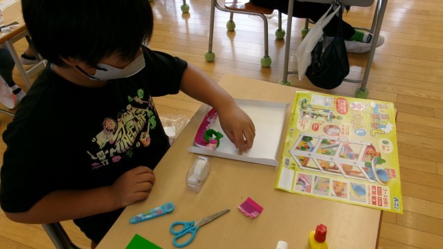 今日は「コロコロガーレ」を作製し始めました。子どもたちはビー玉で動かせる道を作るためにアイデアを出そうと頭をひねっていました。想像しながら作製している姿がワクワクしていて楽しそうでした。