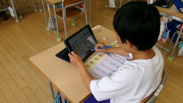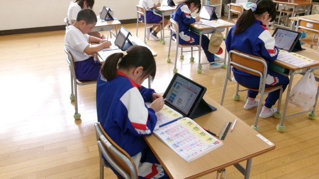 今日は新出漢字を学習しました。スキルノートとタブレットを上手に使いながら、学習できています。
