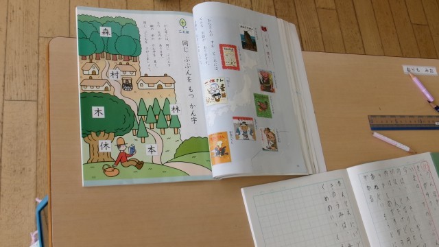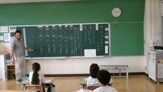 今日のめあては「漢字を比べて同じ部分をさがそう」でした。児童たちは「『今』や『会』」、「『姉』や『妹』」の同じ部分、いわゆる部首の部分をみつけていました。この学習は、3年生の部首の授業につながっていきます。