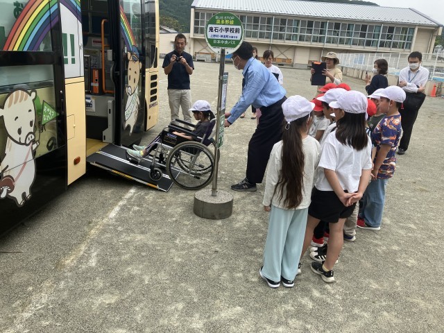今日は日本中央バスの方に来校いただき、バスの乗り方教室を実施しました。乗り方、降り方、お金の払い方など、いろいろ教えてもらい楽しい活動になりました。最後に、ご厚意で運転手さんの席にも乗せてもらいました。