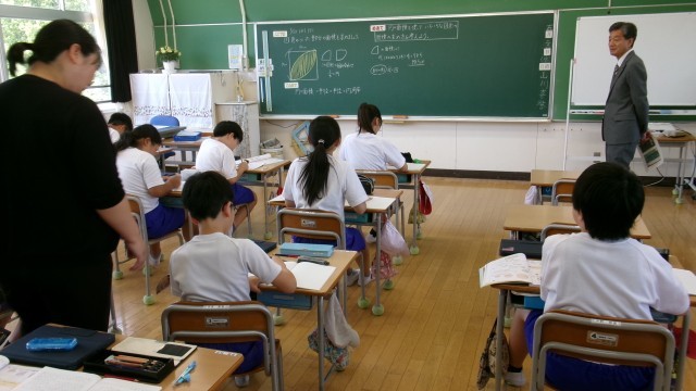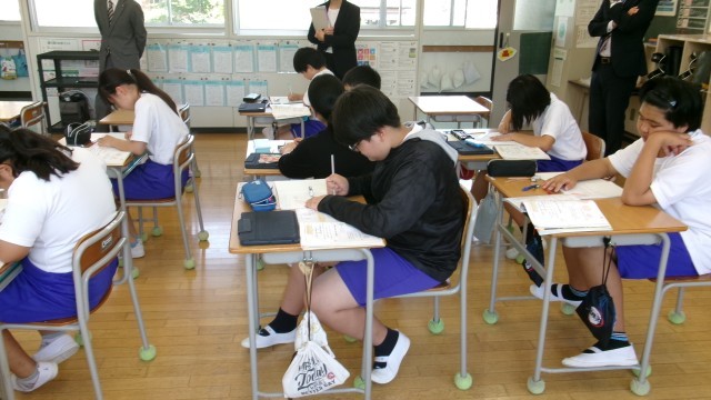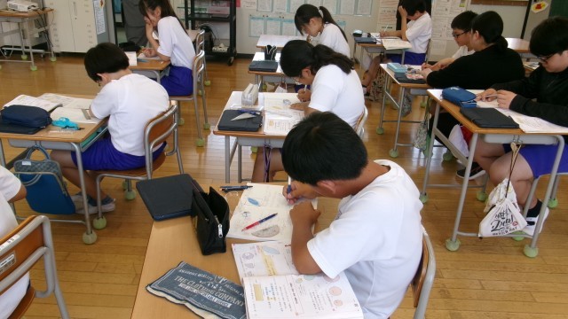 今日は円の面積でも特に難しい問題にチャレンジしました。子どもたちはこれまでに習った円の求め方(公式)を使いながら、色の塗ってある複雑な形の面積を求めました。じっくり考えて答えを導き出す粘り強さも出てきたような気がします。