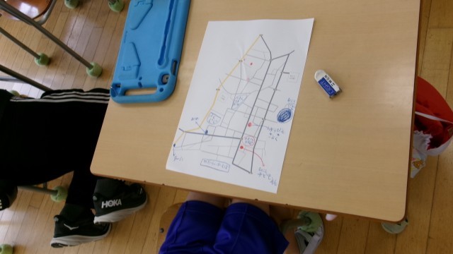 今日はまちたんけんをするために、地図を作成しました。このあと、計画をつくり、いよいよまちたんけんの出発です。