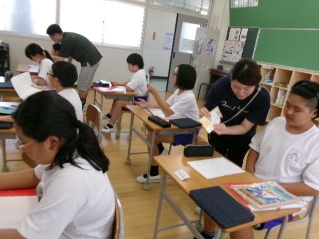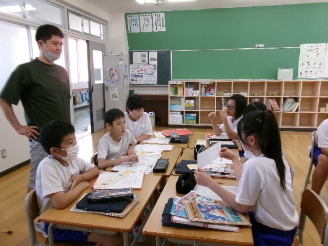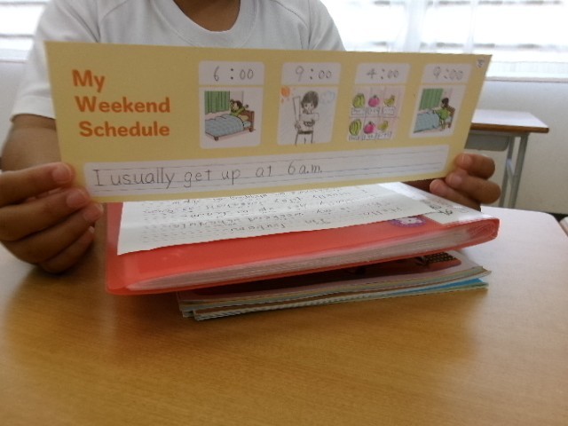 6年生は、「週末の過ごし方カード」を使って、友達にどんな週末を過ごしているのか紹介しました。