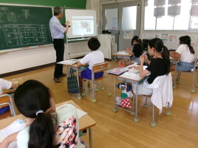 5年生は「種子の発芽と成長のまとめをしよう」をめあてに学習していました。「種子バンク」があって「100年後に種をまいても育つ」ことに驚いていました。もっと長く生きていた種は、2000年前のハスの花が咲いたことを知ると、「家のそばにハスの花が咲く。」「ハスの実はレンコンなんだ。」「レンコンおいしい。」など自分事として理解を深めていました。