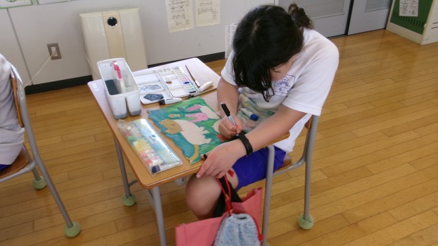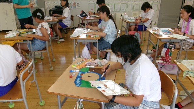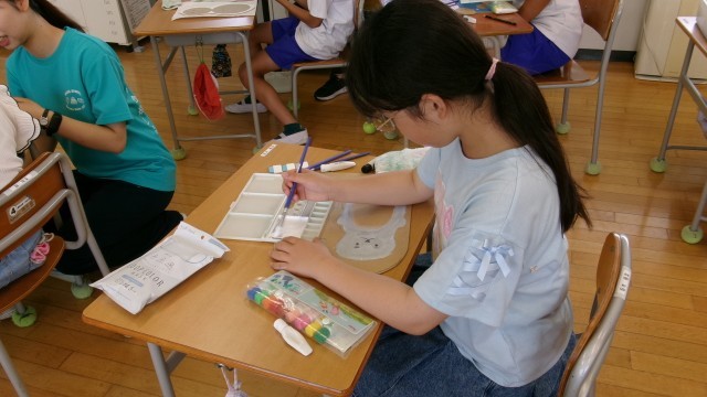 今日は、糸のこで形取った作品の色塗りにチャレンジしました。丁寧に取り組んでいる児童が多く、作品の仕上がりが楽しみです。