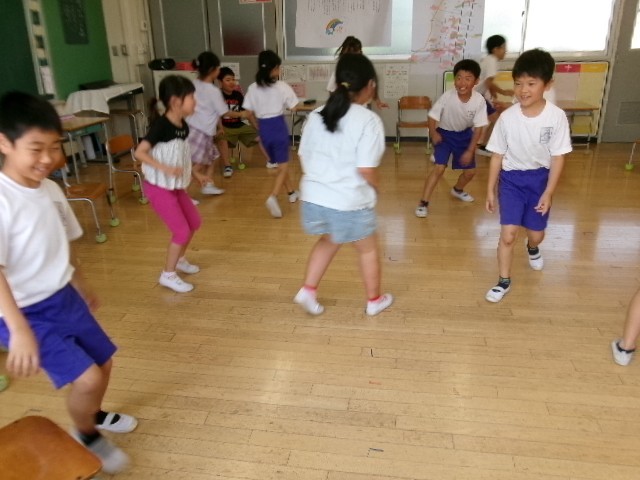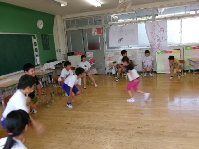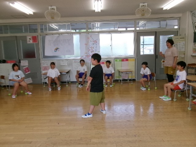 2、3年生は、学級活動を行っていました。「靴下が黒い人」「給食を残さず食べた人」など、みんなで楽しく活動していました。お友達が嫌な想いをするようなことは言わないことを約束にして、人権学習の一環として取り組みました。
