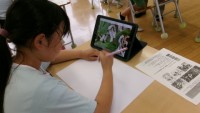5年生は、針と糸を使って「玉結び」と「玉どめ」の練習をしていました。イチゴやひつじに玉どめや玉結びをして模様を完成させました。難しそうでしたが、集中して頑張っていました。
