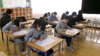 今日の音楽集会は、始めにミッキーマースマーチのメロディーに合わせて、友達の肩を優しくたたきながらリズムを打ちました。その後、「にじ」を歌いました。手話をしながら歌う子、ハモりながら歌う高学年の子など全校で楽しく活動しました。みんなの歌声で雨がやみました。