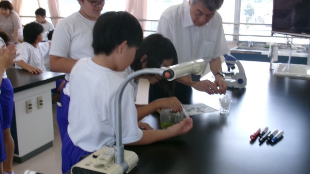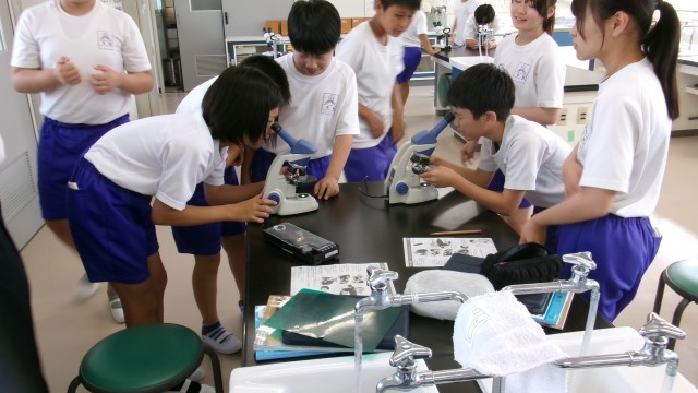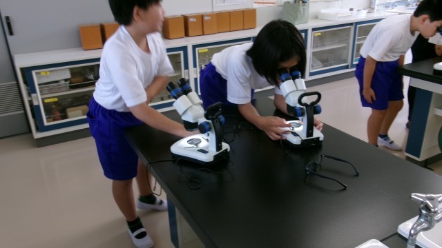 今日は顕微鏡の使い方を学びました。メダカのえさになるものの正体を顕微鏡で観察しました。しっかりピントを合わせられた顕微鏡はしっかり動く微生物を観察できました。
