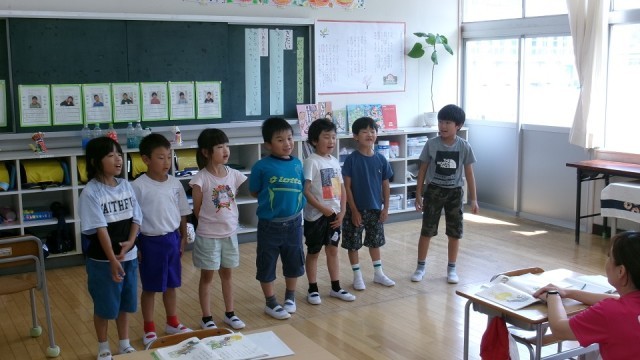 おおきなかぶの音読劇の練習をしました。1回目とは思えないぐらい上手にできていました。みんなでちからを合わせて、かぶをぬこうとするところは迫力がありました。