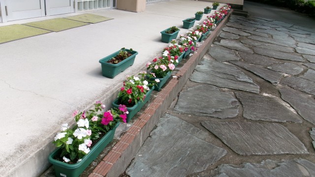 昨日の委員会で、栽培委員会の児童がプランターに花を植えてくれました。おかげで今日の朝は花たちにお出迎えされました。
