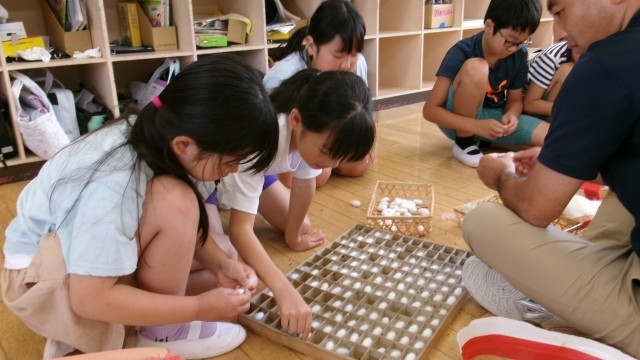今日はカイコを育ててきたことを振り返りました。また、まぶしから繭をきれいにとり出しました。きれいな繭を見て、目を輝かせる3年生でした。