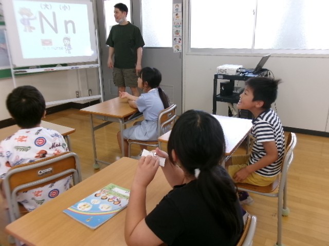 3年生は、好きなことを伝え合う学習をしていました。チャンツやフォニックスの活動を通して、口の開け方や舌の位置などに気を付けながら、リズムに乗って大きな声で発音していました。