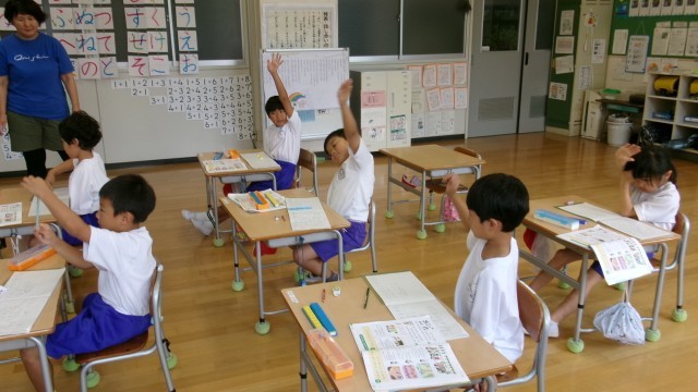 今日のめあては「たし算になるのか、ひき算になるのか考えよう」でした。問題「おりがみが4まいあります。3まいつかいます。のこりはなんまいですか?」から、式をたて答えをじっくり考えました。図を使って考える子、具体物としてブロックを使って考える子がいましたが、答えをしっかり導いていました。