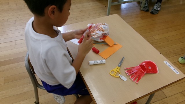 図工の時間に、「ぱくぱっくん」をつくりました。いろいろな絵や模様を描いたり、飾りをつけたりして、「ぱくぱっくん」を楽しみました。