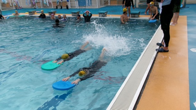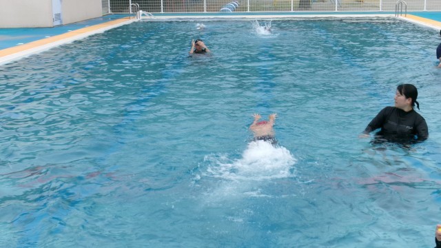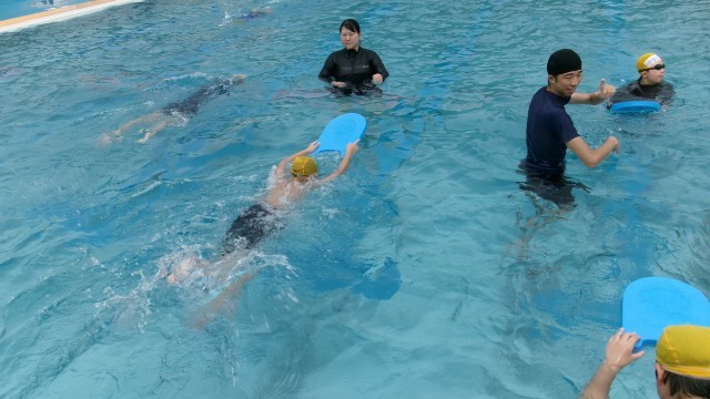 いよいよ、あと2回となった水泳の授業。泳力がどこまで伸びているのか、楽しみです。今日も、先生にアドバイスをもらいながら、練習に励んでいました。