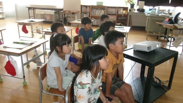 7月8日(火) 1年生活科「なつをさがそう」【進んで学ぶ子 公開日 2025/07/08 更新日 2025/07/08 できごと 今日はビデオ教材を観て、夏ならではの遊びや昆虫などを探しました。真剣な表情で動画を鑑賞する1年生は立派です。