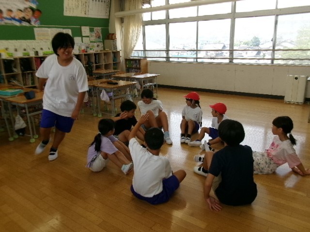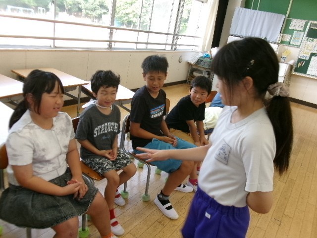 今朝は、縦割り班で活動する「なかよしタイム」でした。6年生がみんなで楽しめる遊びを考え、活動しました。