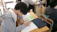 4年生の教室を訪れると、「漢字博士テスト」に一生懸命チャレンジしている姿があり...