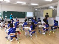 English Roomから元気な声が聞こえたので入ってみると、5年生がクイズに...