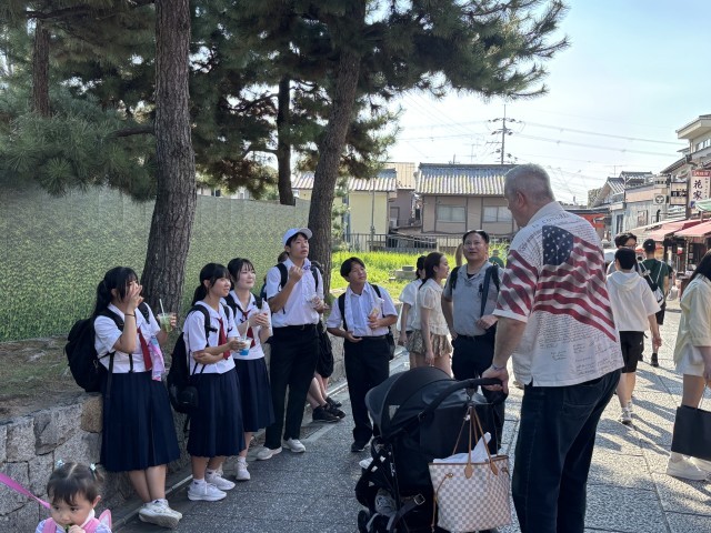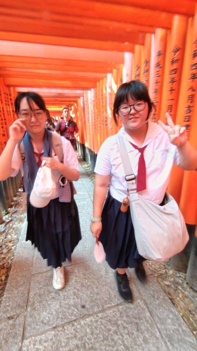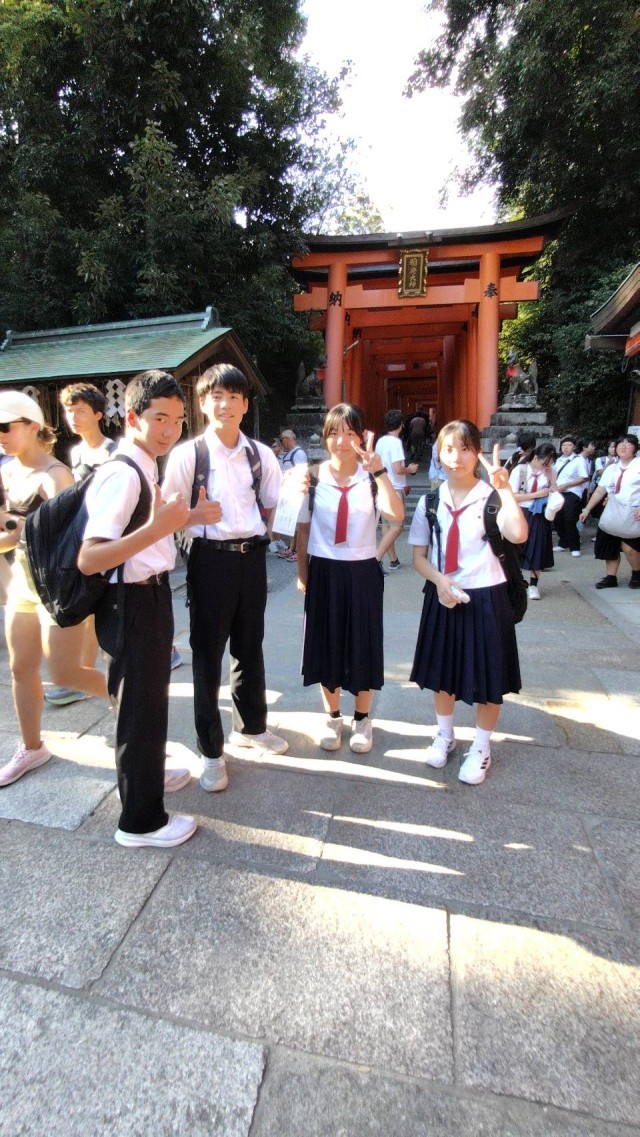 千本鳥居に大興奮です!外国の方と交流している班もありました。