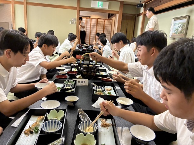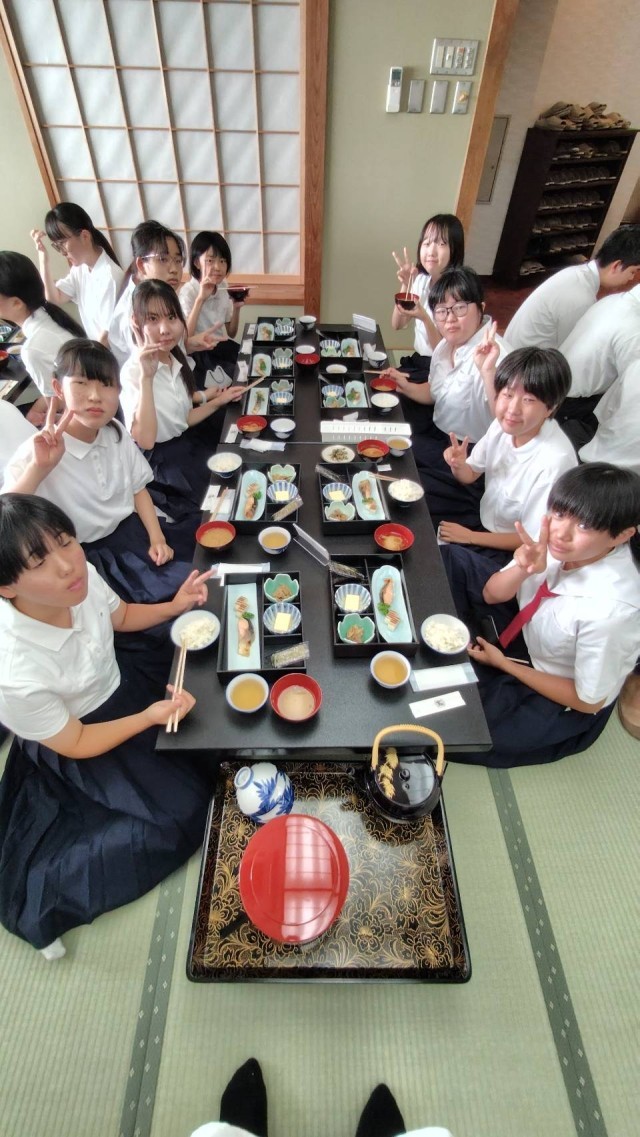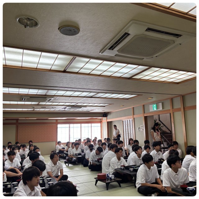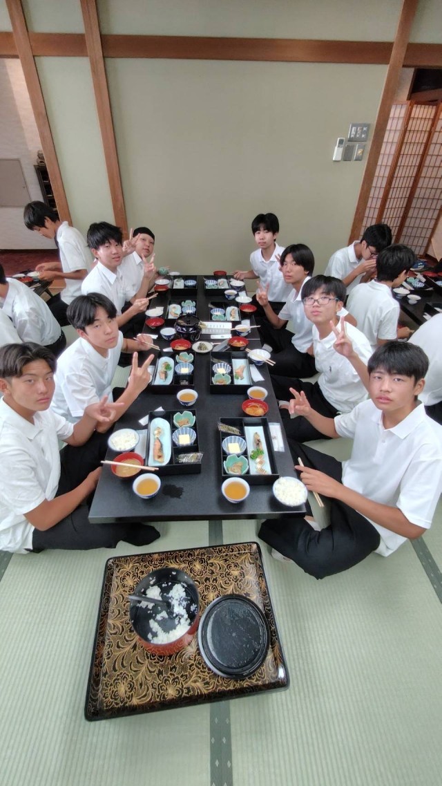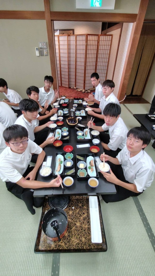 朝7:00、みんな揃って朝食をモリモリいただきます。昨夜は、若干体調が不安な生徒もいましたが、一夜明け、復活しました。今日は、一日中班別行動ですので、暑さに負けず、頑張ってほしいですね。