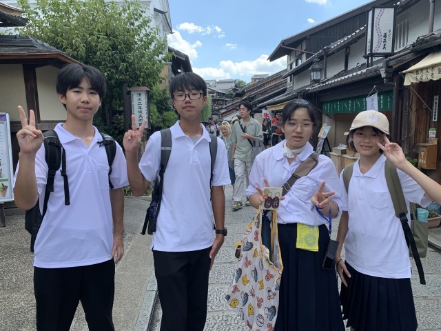 産寧坂にて、これから石畳の道を辿り、八坂の塔方面に向かいます。