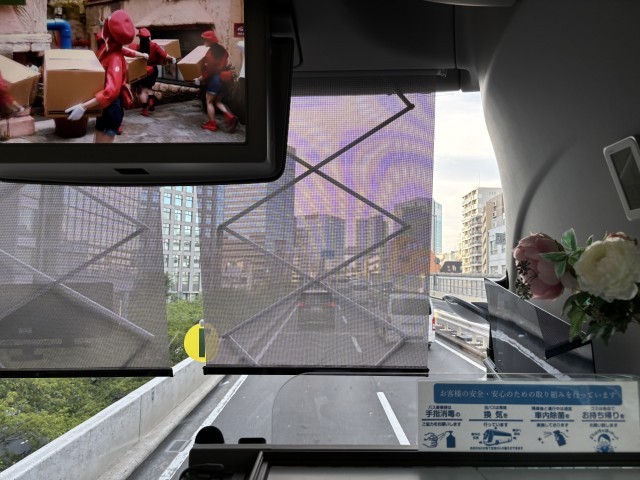 ほぼ予定どおりに東京駅からバスに乗り現在首都高速を進んでいます。三芳SAでのトイレ休憩の際、メール配信をする予定です。車中では、DVD、カラオケ、ビンゴ大会、、いろいろなようです。