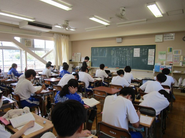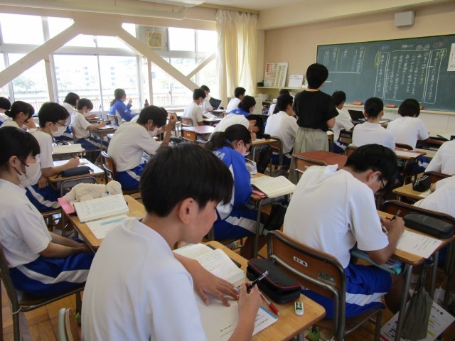 これまで、教材文の内容の整理をしてきました。今日は、筆者の論理の展開について考える時間です。生徒は、筆者の論理の展開の効果や説得力について評価していました。