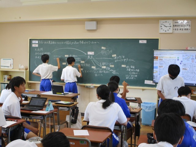 四国地方の農業がどのように発展し、競争力を高めてきているのかについて学習していました。特に瀬戸内では、ミカンやレモン、オリーブなどの栽培が盛んですね。