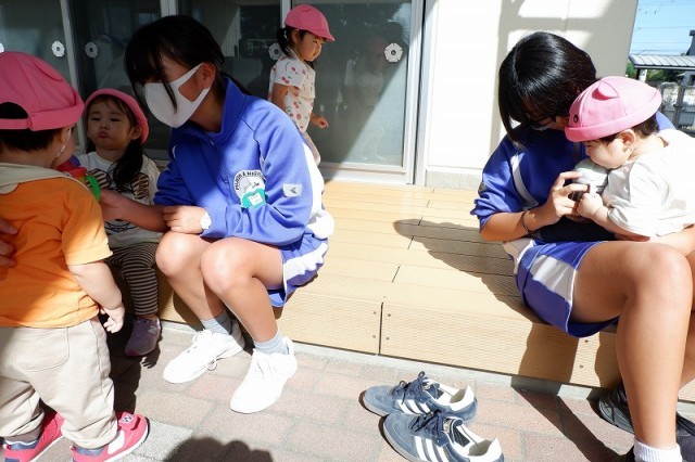 本日がチャレンジウィーク最終日です。のぞみ幼稚園では運動会リベンジの練習をしていました。生徒たちは子どもを日陰に連れて行ってお茶を飲ませたりかけっこスタート位置を教えてあげたり、と子どもの様子を見て動けていました。