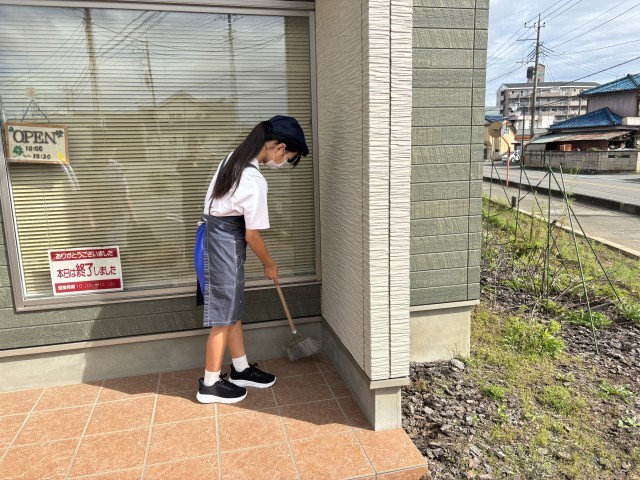 コンフォートプレイスひなたカフェ、わっかでは1名の生徒がお世話になっています。開店前の清掃や生地を丸める作業をしていました。その他にもマーカーケースの組み立ての軽作業を行っていました。お客様にかかわることなので丁寧に作業をしていました。