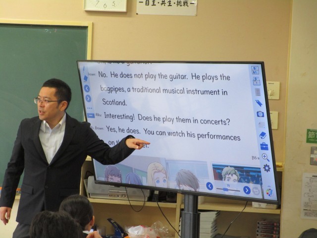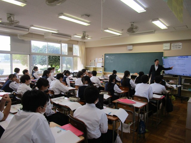 本文を読んで、その質問に対する答えをみんなで考えながら学習を進めていました。たくさんの生徒が声に出して「Yes.・・・」「No,・・・」と答えていました。