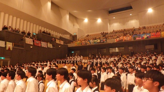 合唱コンクールの表彰式が行われ、悲喜こもごもですが、どのクラスもとてもよい合唱でした。